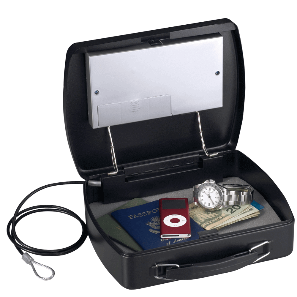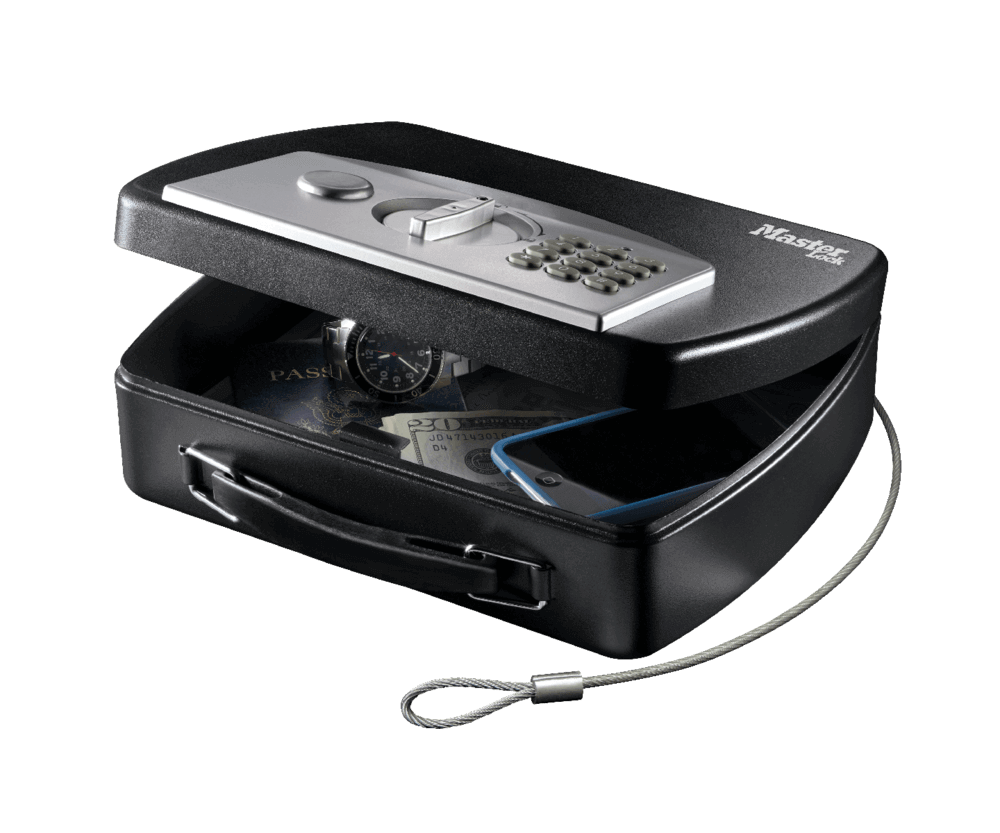 Die kleine Dokumentenkassette Master Lock Nr. P008EML mit digitalem Kombinationsschloss ist ideal für die Sicherheit unterwegs. Sie bietet mobilen Schutz - perfekt für Autos, LKW, Schlafräume, Campingwagen und Boote oder für den Strand. Geeignet für die sichere Aufbewahrung von Dokumenten, Datenträgern, Mobiltelefonen, Geldbörsen, MP3-Spielern, Navigationssystemen und anderen kompakten, teuren Gegenständen, die besonders oft gestohlen werden. Die Dokumentenkassette kann mittels Stahlkabel an einem Gegenstand am Fußboden befestigt werden. Die digitale Kombination mit Verzögerungsmodus nach Eingabe von mehreren falschen Zugangskombinationen erhöht die Sicherheit.