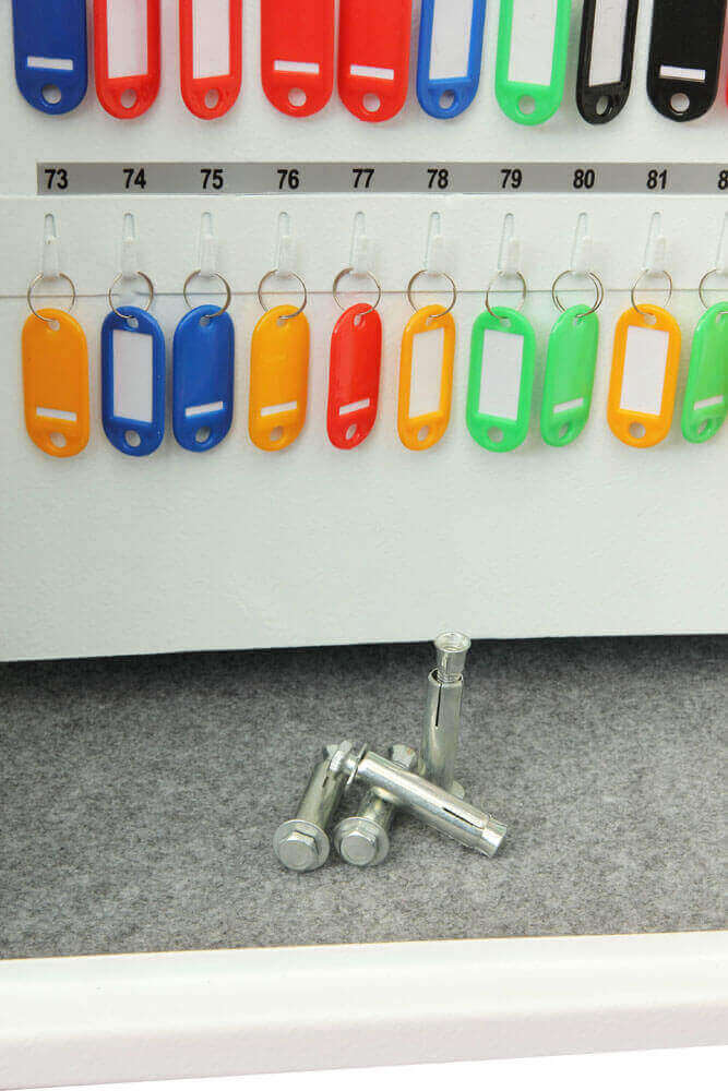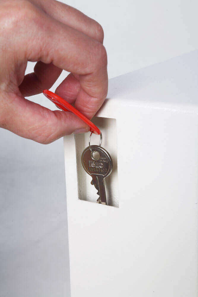 Ideal für zuhause, die Werkstatt oder das Büro! Ein robuster Schlüsseltresor, gefertigt mit Schlüsselhaken für bis zu 30 Schlüssel, beschichtet mit hochwertiger, kratzfester Farbe in Signalweiss. Ein benutzerfreundliches, eketronisches Tastenschloss mit manipulationsgesicherter Magnetverriegelung sichert Ihre Schlüssel. Als besondere Eigenschaft verfügt das Modell über einen Einwurfschlitz, damit Schlüssel zurückgegeben werden können, ohne dass der Tresor geöffnet werden muss. Ein Revisionsschlüsselschloss falls der Code vergessen wurde und 2 Revisionsschlüssel sind ebenfalls enthalten.
